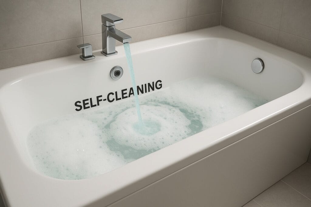 Jeśli masz wannę lub brodzik, znasz ten moment: widzisz osad, kamień, plamy po mydле. I zaczyna się szorowanie. Co weekend to samo.
