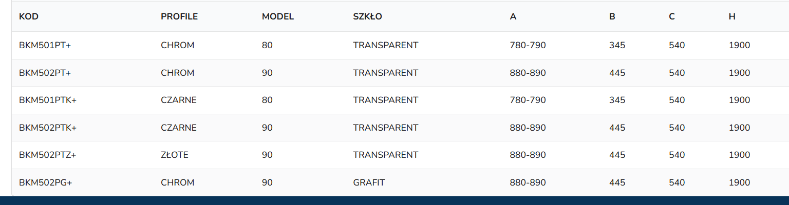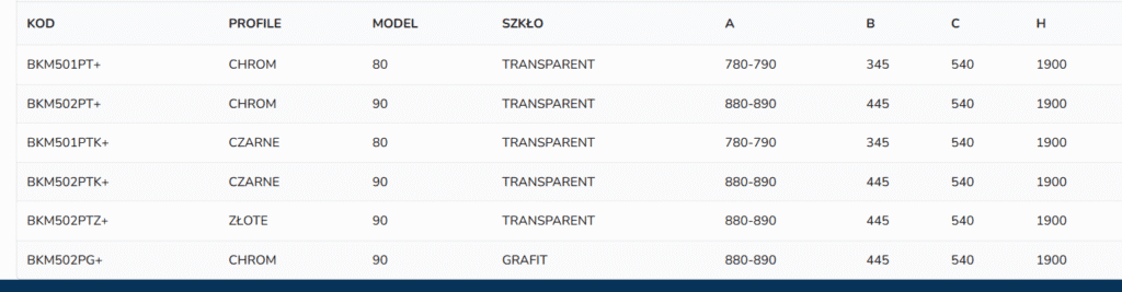 Parametry techniczne kabiny prysznicowej złotej 90×90