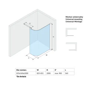 Można zamontować ją samodzielnie lub w komplecie ze ścianką boczną – wówczas może stworzyć gotową kabinę Walk-In, która ma wiele zalet: